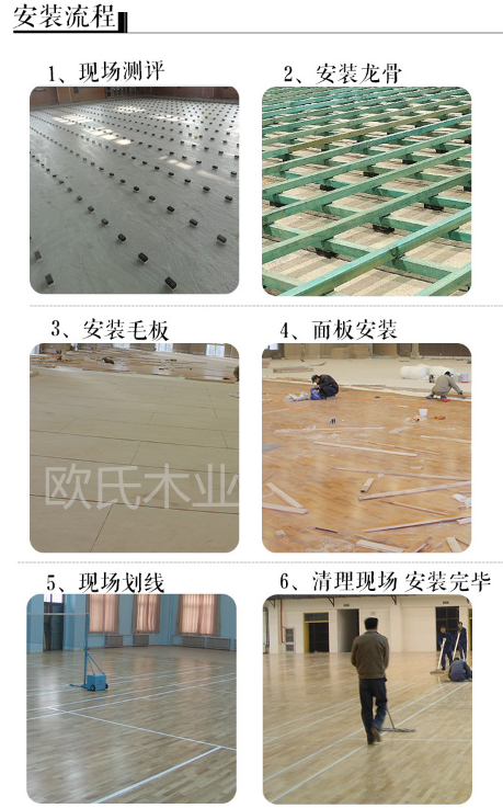 歐氏木業(yè)體育運(yùn)動(dòng)木地板安裝流程圖: